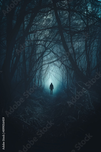 © ShatteredDreams, Fototapeta premium silhouette of a person in a forest with fog