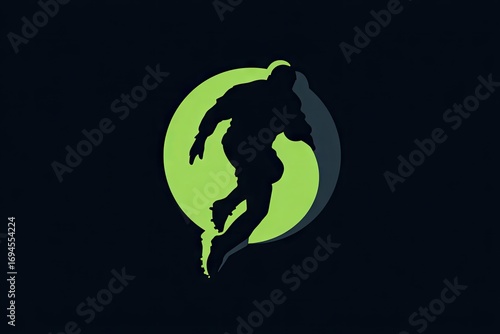 © lail, Obraz premium Silhouette of a person in motion within a lime green circle.