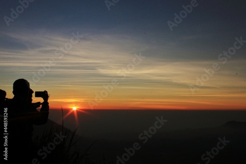 Obraz premium silhouette of a person sitting on a bench at sunset