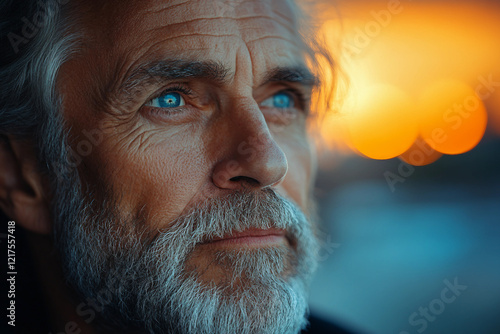 © Tetiana, Obraz premium Silhouette of a person watching sunset, generative AI