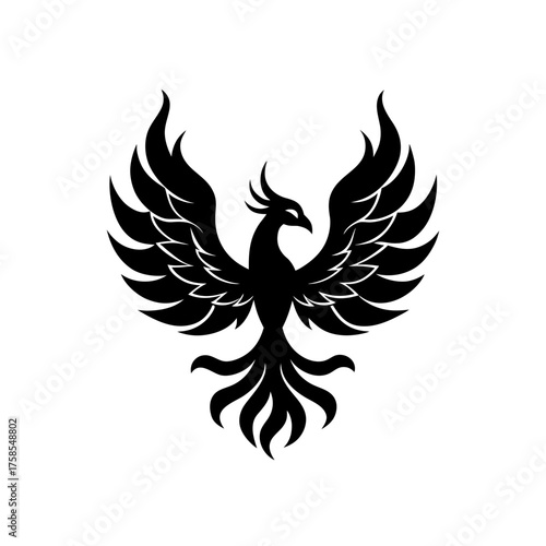 © Ujjol, Obraz premium Silhouette of a phoenix with wings on transparent background