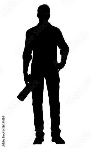 © Riko Best, Fototapeta premium Silhouette of a photographer with dslr camera isolated on white