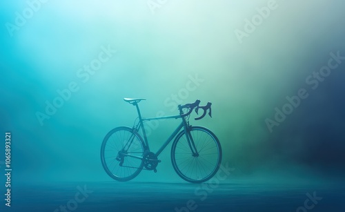 © Ishika, Obraz premium Silhouette of a road bicycle in a misty, turquoise-colored environment