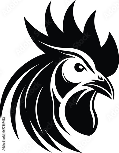 © professional, Obraz premium Silhouette of a rooster head profile, sharp clean lines..