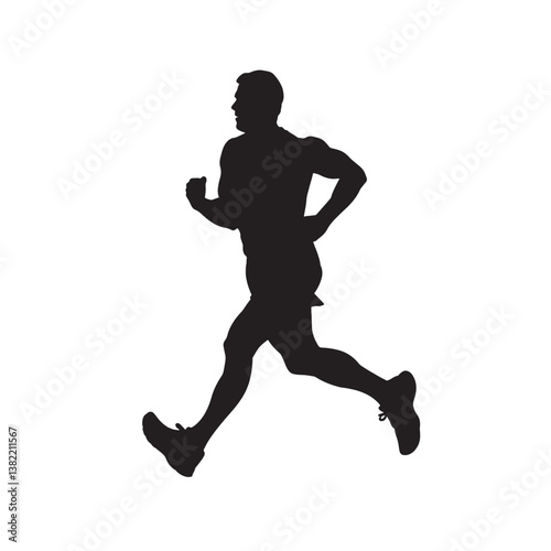 © SourceOfPhotos, Naklejka premium Silhouette of a running and jumping athlete