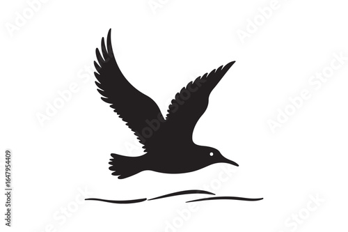 © Sadek, Obraz premium Silhouette of a seagull in flight over water