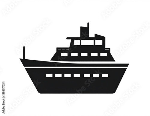 © estehgelas, Obraz premium Silhouette of a sleek, black yacht with multiple decks, depicted on a plain white background