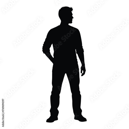 © BIPUL, Fototapeta premium Silhouette of a standing man with one hand in pocket looking to the side silhouette