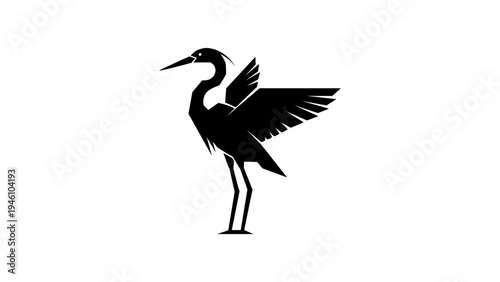 © Denis, Obraz premium Silhouette of a stylized crane with open wings in minimalist design