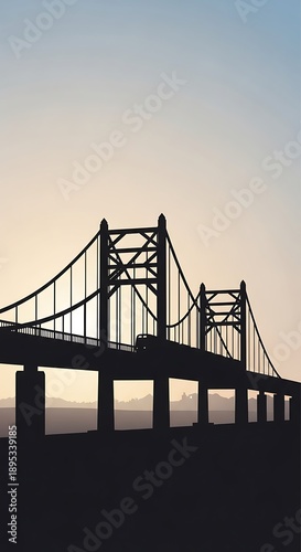 © Wera, Obraz premium Silhouette of a suspension bridge at sunset.