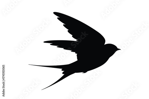 © MDMINTU, Fototapeta premium Silhouette of a swallow bird in flight with wings spread wide against white background