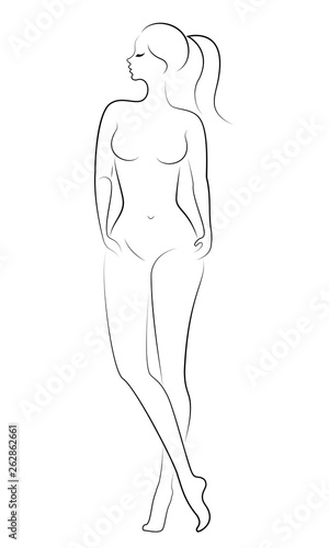 © Nataliia, Naklejka premium Silhouette of a sweet graceful lady. The girl has a beautiful slim figure. A woman is standing. Vector illustration.