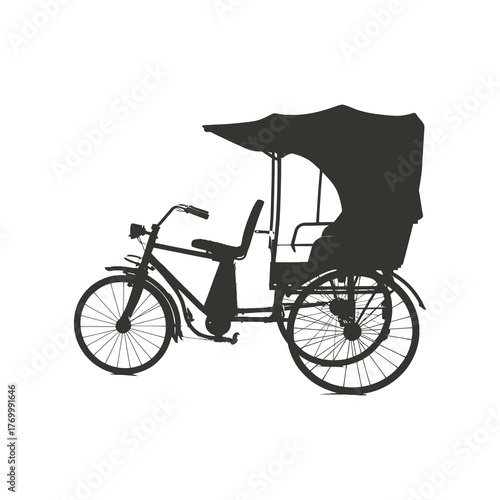 © MDSIYAMRAHMAN, Obraz premium Silhouette of a traditional rickshaw vehicle with a covered passenger space