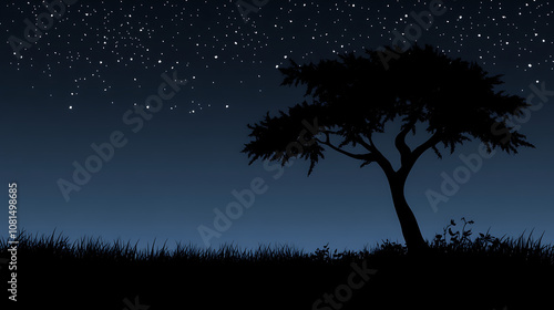 Naklejka premium Silhouette of a tree against a dark, starry night sky