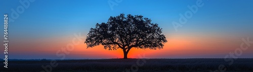 Fototapeta premium Silhouette of a tree at dawn, nature's sentinel against the sky