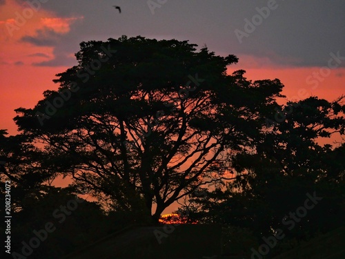 © Tarikh Jumeer, Fototapeta premium Silhouette of a tree under pink skies