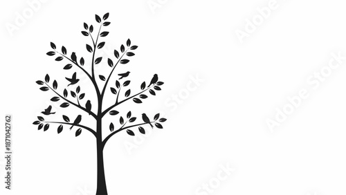 © Rian, Obraz premium Silhouette of a tree with many birds perched on its branches.