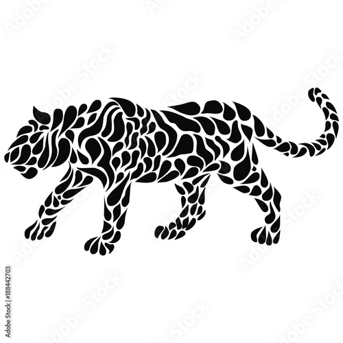 © julimur, Fototapeta premium Silhouette of a walking black panther in a tattoo style. Vector illustration