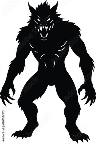 Fototapeta premium Silhouette of a Werewolf in a Fearsome Stance Displaying Sharp Teeth and Claws