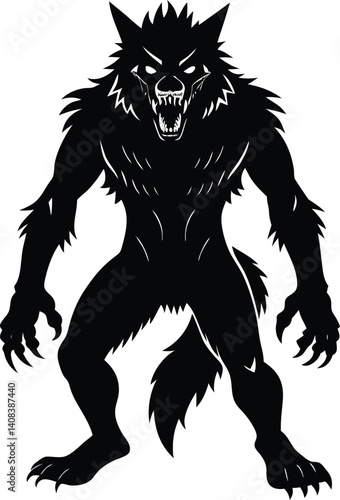 © Mother Of Mahofuj, Obraz premium Silhouette of a Werewolf in a Fearsome Stance Displaying Sharp Teeth and Claws