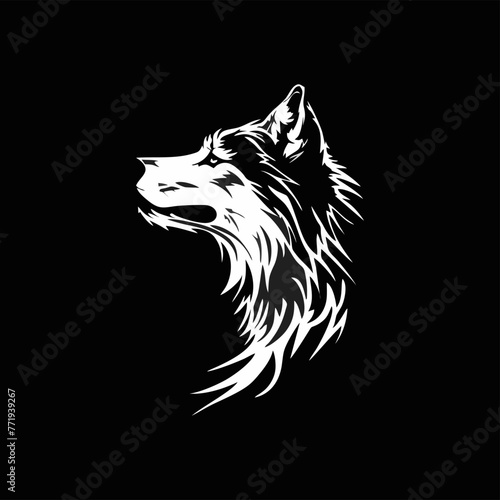Obraz premium silhouette of a wolf's head isolated on a black background. logo vector illustration