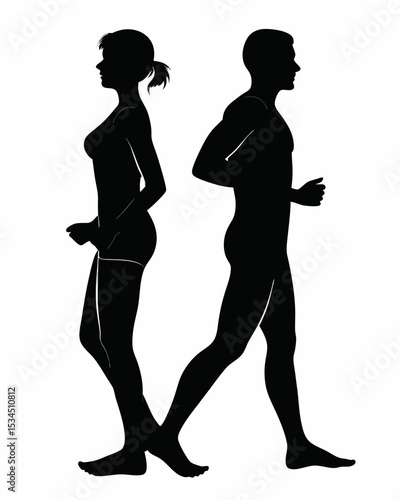Fototapeta premium Silhouette of a woman and man standing back to back against a white...