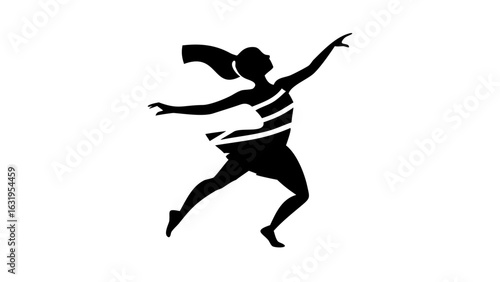 © Ijaz, Naklejka premium Silhouette of a woman in a striped dress dancing with her arms raised in a joyful expression