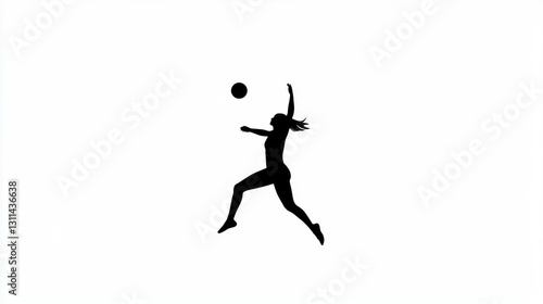 Fototapeta premium Silhouette of a woman playing volleyball, white background, dynamic action