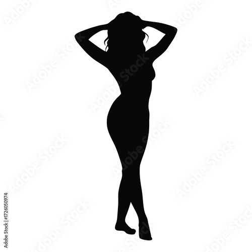 Fototapeta premium Silhouette of a woman posing gracefully black and white vector art...