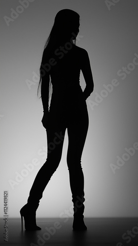 © tiagozr, Fototapeta premium Silhouette of a woman standing confidently.