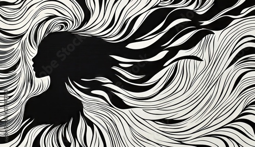 Obraz premium Silhouette of a woman with flowing hair. Intricate design