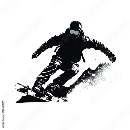 © Unreal image, Obraz premium Silhouette of a young male performing snowboarding tricks