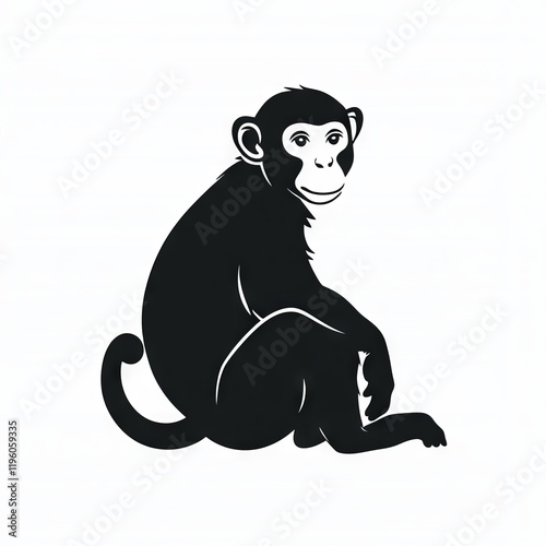 © Adames Art Studio, Fototapeta premium Silhouette of a young monkey sitting