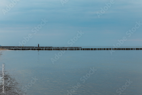 © Ewelina, Obraz premium silhouette of an angler by the sea