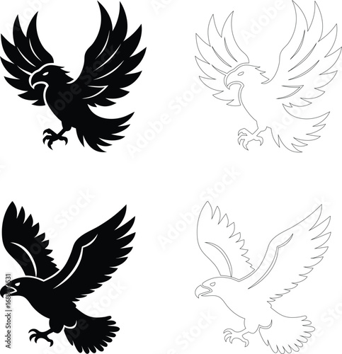 © MDEHSANUR, Fototapeta premium Silhouette of an eagle soaring in side view, flat bold black vector