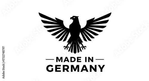 Obraz premium Silhouette of an eagle with spread wings and the text made in germany