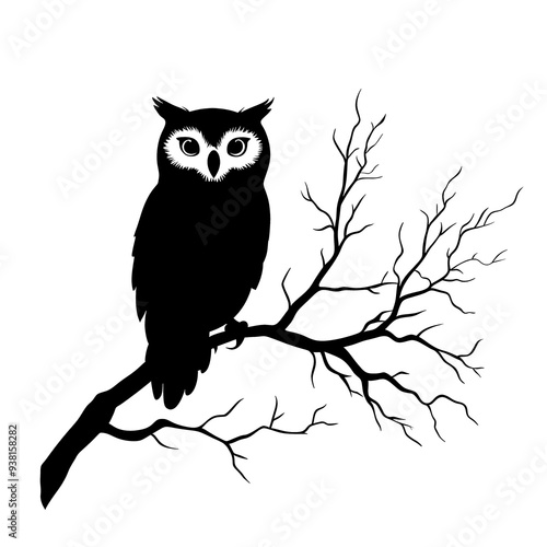 © Koborixgen, Fototapeta premium Silhouette of an owl perched on a branch.