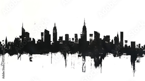 © Kavita, Obraz premium Silhouette of an urban skyline with multiple buildings on a white background