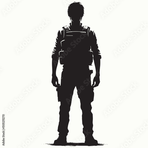 Fototapeta premium Silhouette of Armed Soldier Powerful Black and White Illustration