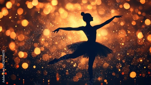 Naklejka premium Silhouette of Ballerina Dancing Against a Glowing Background