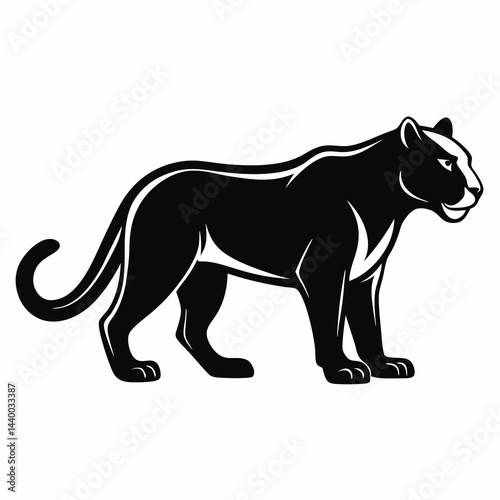 © Nayeem, Obraz premium Silhouette of Big Cat – Leopard or Panther in Side View, Minimalist Black and White Vector Art