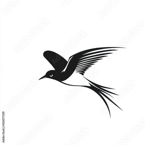 © Mundhut, Fototapeta premium Silhouette of bird in flight against white background, decorative graphic for design use