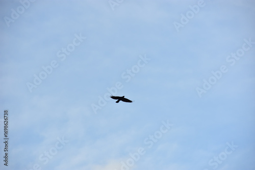 © Golam Rob, Obraz premium Silhouette of Birds Flying in Clear Blue Sky with Spread Wings, Flock and Single Crow Flight Captured in Natural Wildlife Freedom Concept Photography