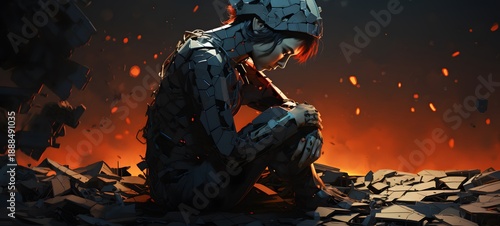 © HeniWulansari, Fototapeta premium silhouette of Broken Cyborg ,generative AI