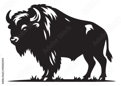 © Adobe design, Fototapeta premium silhouette of buffalo logo vector, bull logo icon silhouette bison, bison logo silhouette vector, black bull silhouette, vector silhouette buffalo silhouette isolated on white background
