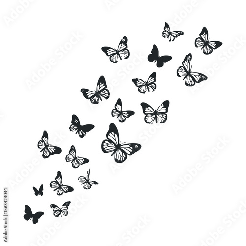 Fototapeta premium Silhouette of butterfly swarm in flight on white background