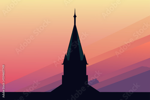 © DreamOnDesign, Fototapeta premium Silhouette of Church Spire at Golden Hour with Pastel Sky