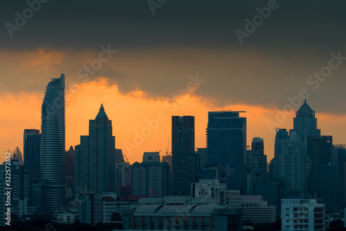 Fototapeta premium Silhouette of City skyline while sunset in downtown district at Bangkok.
