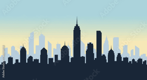 Fototapeta premium Silhouette of Cityscape at Dawn Illustrating Urban Development and Modern Architecture
