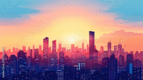 © PalaG, Obraz premium Silhouette of cityscape with twilight hues